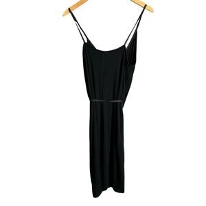 ATM Anthony Thomas Melillo Modal Faux Wrap Dress in Black. Size L / Large. Features V-neck, sleeveless, tie waist, lurex metallic trim, faux wrap design, micro modal rib fabric, and knee length. Style AW2212-EC. 96% Micromodal, 4% Spandex. Excellent condition, no flaws.