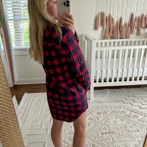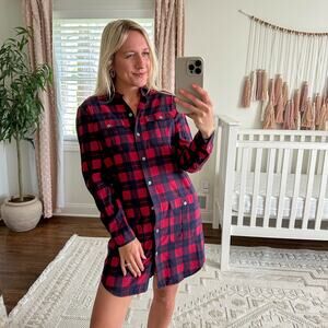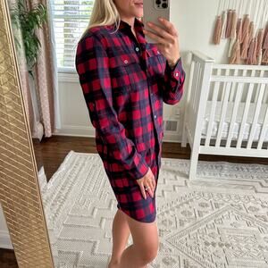 ATM Anthony Thomas Melillo Plaid Flannel Long Sleeve Shirt Dress Red Black XS