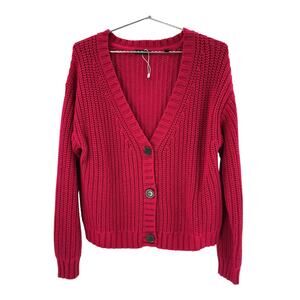 ATM Anthony Thomas Melillo Red Cotton Crop Cardigan Size S / P: v-neck, long sleeves, front button closure, measurements: 21.5 inch bust x 21 inch length.