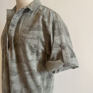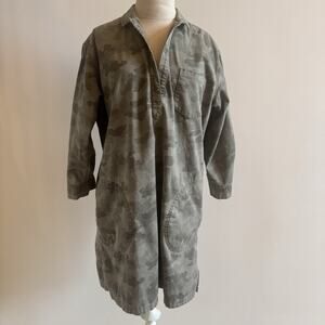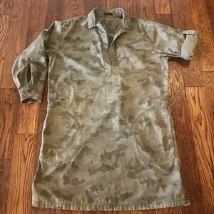 ATM Anthony Thomas Melillo Shirt Dress S Camo Pockets Stretch Cotton Military