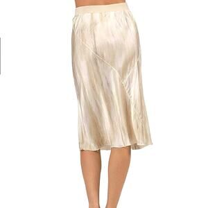 Like liquid gold for your wardrobe. This ethereal 100% silk midi skirt by ATM Anthony Thomas Melillo drapes like a dream, with a subtle shimmer and a painterly dip-dye wash in muted gold, beige, and green. A rare, elevated basic for capsule wardrobes, golden hour dinners, rooftop drinks, or wedding guest moments.