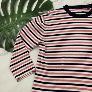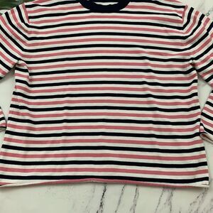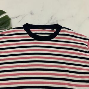 ATM Anthony Thomas Melillo women's pink and navy blue striped lightweight sweater top, size M. It is free from any rips or stains. It measures about 42 inches around the bust and is about 22 inches long.