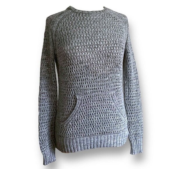 ATM Anthony Thomas Melillo Womens Sweater XS Gray Open Knit Kangaroo Pocket