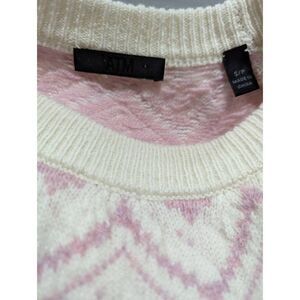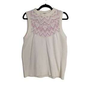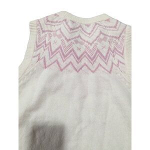Soft pink fair isle print, excellent condition, no holes or stains. 100% wool Dry clean only.