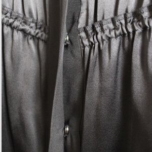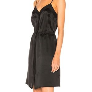 ATM Anthony Thomas Melillio Cami Dress in black. Size Small. 100% silk. Made in China. Dry clean only. Unlined. Adjustable shoulder straps. Hidden button front closures. Elastic waist. Side slit pockets.