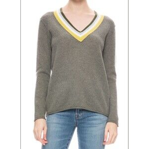 ATM deep v-neckline sweater in super soft cashmere. - V-neckline with contrast stripes - Elongated sleeves - Exposed seams at shoulders - Rolled hemline Made with 100% Cashmere.