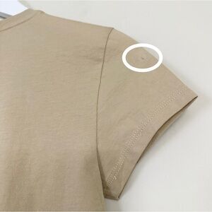 Preowned great condition but there is a tiny spot on the right side sleeve in the back of shirt. Circled in photo.