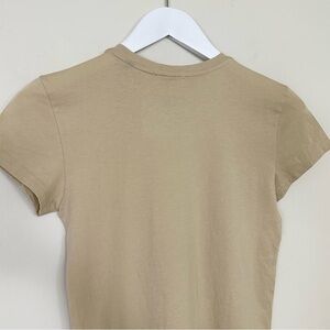 “Our signature Pima Cotton Baby Tee is updated this season in our relaxed Classic Jersey. This shrunken silhouette features a crew neck and short sleeves. It's the ultimate everyday basic.”