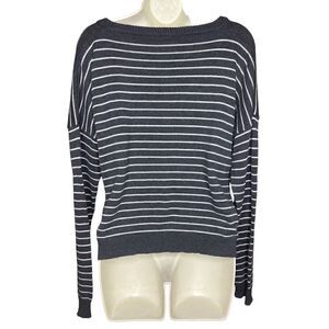 ATM Grey & White Striped V Neck Cropped Sweater NWT Size Small