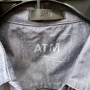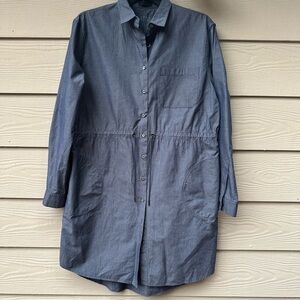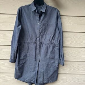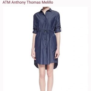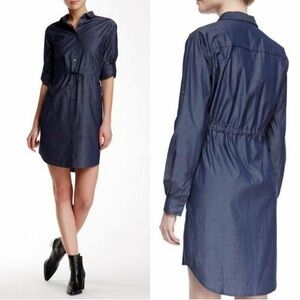 ATM Parka Drawstring Chambray Shirt Dress Blue