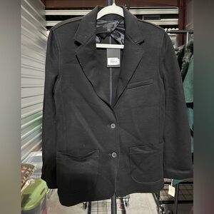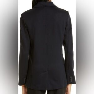 Rounded patch pockets detail the front of this polished blazer rendered in a timeless neutral and finished with classic notched lapels.
