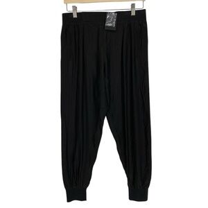 features: "The ease of a tailored jogger meets the elevated feel of pure silk in these beautiful pants. They are the epitome of relaxed elegance with a featherweight construction, understated pleating, and subtle elastic ribbing at the ankles and waistband."