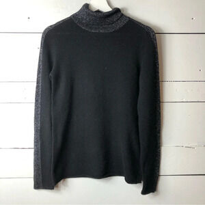 ATM Sparkle Side Stripe Cashmere Turtleneck Sweater in Black Size Medium