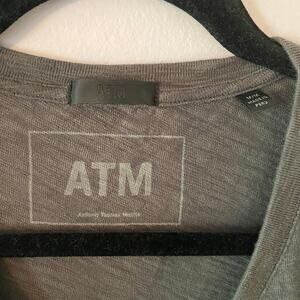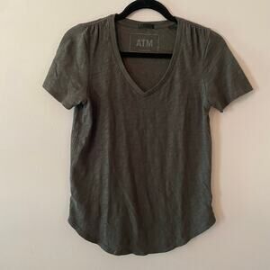 ATM Women Charcoal Gray V-neck T-Shirt 100% Cotton Basic Minimalist size Medium