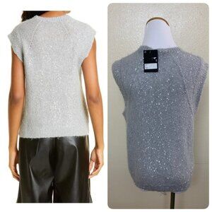 ATM Anthony Thomas Melilo Womens Sequin Crew Neck Knit Sweater Vest SMALL Gray Fog