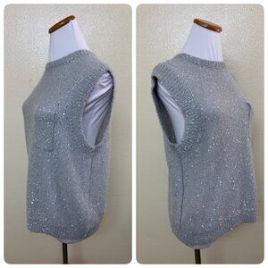 ATM Womens Sequin Crew Neck Knit Sweater Vest SMALL Gray Fog Alpaca Wool Blend