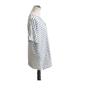 ATM Women’s Striped Tunic Nautical Cotton V- Neck Cream Blue Size Large