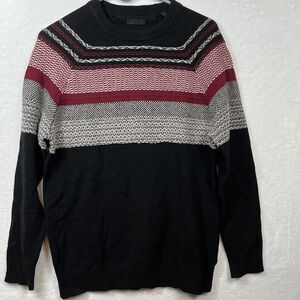 ATM Womens Wool Blend Fair Isle Sweater Size XS Black Red Gray Long Sleeve EUC