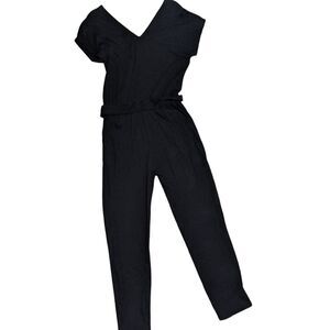ATM black cotton jump short sleeve elastic waist jump suit women's size Small