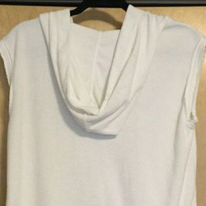 Sewn from deliciously soft French terrycloth, this bright white shift dress is perfect for packing on your next vacation. - Split neck with drawstring hood - Cap sleeves - Side seam pockets - Split hem - Approx. 32 1/2" length (Imported Fiber Content 80% cotton, 20% polyester Care Machine Wash Cold Line Dry Additional Info Fit: this style fits true to size. Arm pit to arm pit 18” #0222