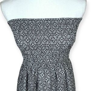 ATMOSPHERE BLACK & WHITE W/ ORANGE STRIPE STRAPLESS DRESS SZ.8 EUC.