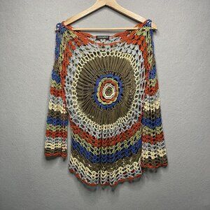 EUC Atmosphere sweater with boat neck. Blue color with silver floss throughout. 100% acrylic. Unique stitch pattern reminds me of roses. Wash inside out in cold and lay flat to dry. Approximate Measurements (laying flat): bust: 19” length: 24” pit to cuff: 21”