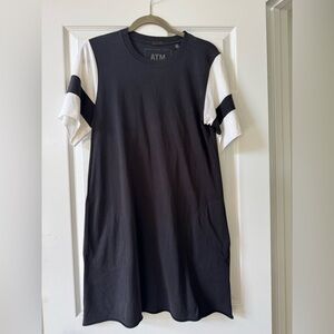 ATM Women's Classic Jersey Striped Sleeve Crew Neck Dress Size M