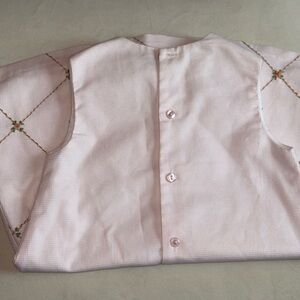 Pink dress by Kali. Features subtle floral details. Ideal for formal occasions.