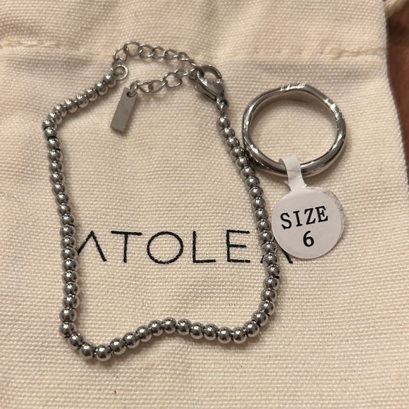 ATOLEA beachwear Silver Beaded Bracelet and Ring Set