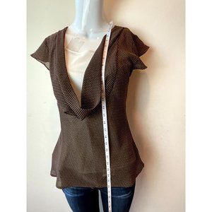 ATP 9 Women Polka Dots Blouse Top Big Cowl Neck Built-in Bra Brown Size Medium
