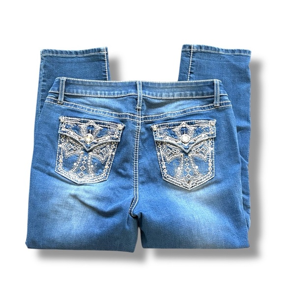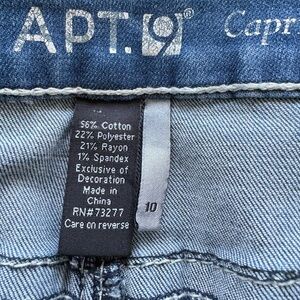 ATP. 9 Women's 10 Blue Denim Capri Cross Rhinestone Embellished Jeans