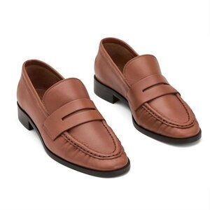 ATP ATELIER Airola Penny LOAFERS Flats 6 Brandy Brown Nappa Leather NEW $590