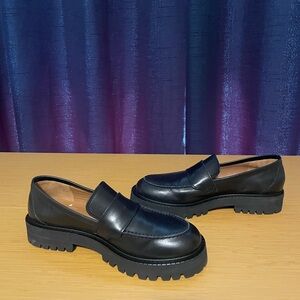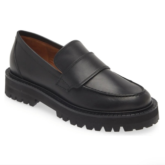Tonal stitching and smooth leather distinguish a sophisticated loafer grounded by a chunky platform and durable Vibram® vulcanized-rubber lug sole. The leather has a naturally distressed look to it