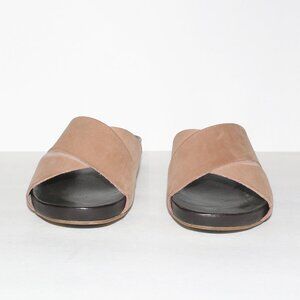 ATP ATELIER "DORIS" TAN VACHETTA LEATHER WEDGE SANDAL MADE IN ITALY