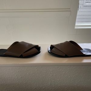 Gently Used slides, minor scuffs on leather, did not wear very often so top leather is still firm, cloth bag included. Please reach out for more pictures