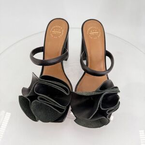 -ATP Atelier Fossalto Sandals Black Leather Block Heel Oversized Flower 36 EU / 6