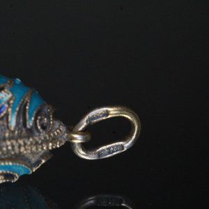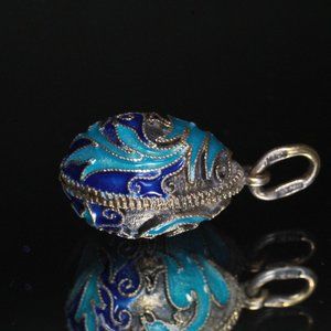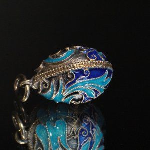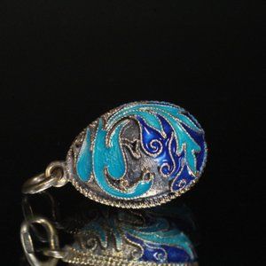 ATQ ART NOUVEAU KOKOSHNIK STERLING SILVER BLUE HUES CLOISONNE RUSSIAN EGG CHARM