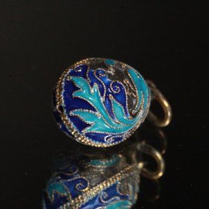 This Art Nouveau Russian Imperial Egg charm features dark and light blue color swirls and scrolls enameling etched on this beautiful sterling silver plated with gold. This is 13mm by 17mm and in magnificent condition.