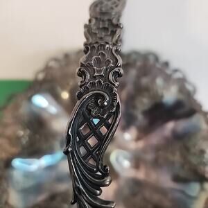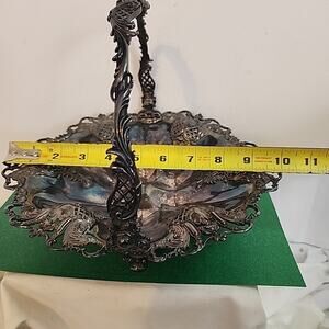 The ATQ VAN BERGH Rochester NY Bride Basket is a stunning piece of Victorian-era silverplate craftsmanship. With a floral design and footed base, this 11" long x 8-1/2" wide x 7" high basket exudes elegance and charm. The intricate pattern and quadruple silverplate construction make it a beautiful addition to any antique collection or as a unique piece to display in a Victorian-style home. A true treasure from the late 19th century, this bride basket is a rare find for collectors of fine silver and antique decorative items.
