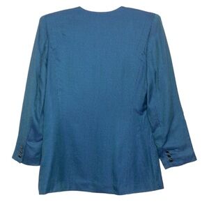 ATRIUM COLLECTION - VINTAGE Teal, Blue & Purple Collarless Classic 80s-90s Button Front Blazer w/ Shoulder Pads & Pockets. Buttons are glossy black inlaid in brassy gold finish. Size 10. No visible flaws. Excellent pre-owned condition. LIKE NEW!