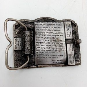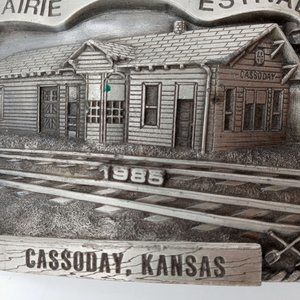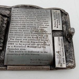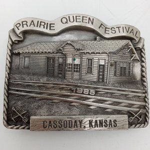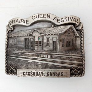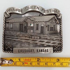ATSF Train Depot Belt Buckle Cassoday KS 1985 Prairie Queen Festival Vintage