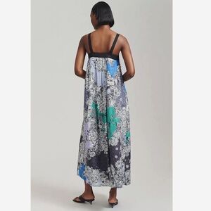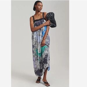 ATSU ANTHROPOLOGIE WOMENS PRINTED MAXI DRESS FLORAL SLEEVLESS SIZE LARGE BLACK