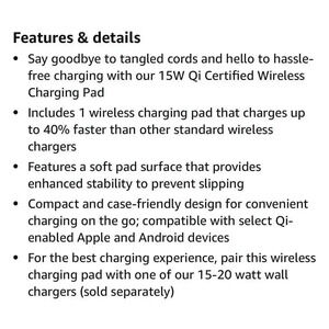 In addition to its practical features, this charging pad also boasts a sleek and stylish black design that complements any modern decor. Whether you're at home or on the go, this wireless charging pad is the perfect accessory to keep your devices charged and ready to go.
