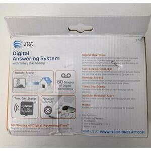 AT&T 1740 Digital Answering Machine System 60 Minutes Remote Access Telephone.