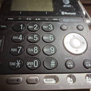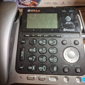 Pre-Owned AT&T 2 Line Answering Machine Phone with some scratches and wear visible. Still works good.