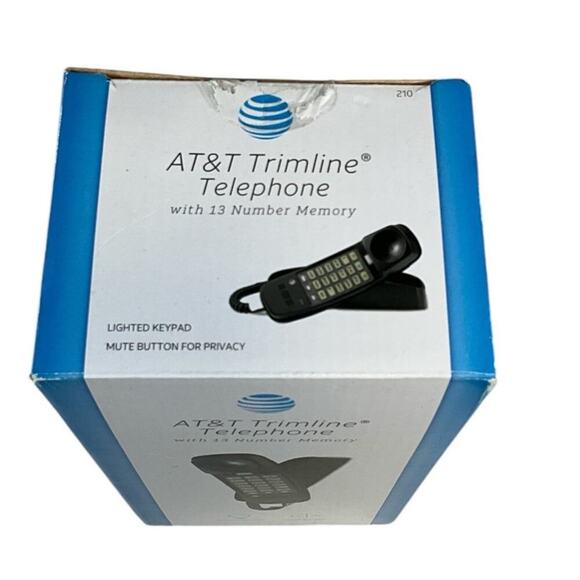 AT&T 210 Trimline Black Telephone Corded Lighted Keypad NWT 13 Number Memory