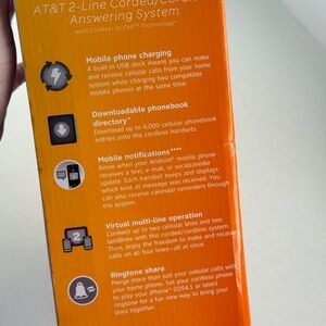 Phone answering system from AT&T is two line corded and cordless with connect to cell technology. Comes with original box. There is a small scratch on the main phone (pictured).