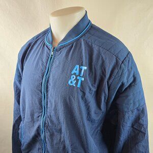 AT&T Jacket Mens Large Navy Blue Nylon Bomber Logo Employee Uniform Windbreaker