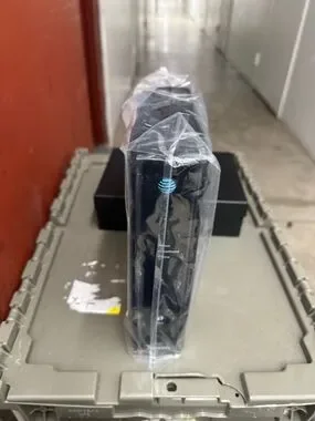 AT&T wireless router in black. Reliable Wi‑Fi performance for streaming, gaming, and smart home devices. Easy setup and stable connectivity across your home. Compact black design fits any workspace or living area.