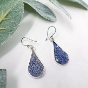 Women's Sterling Silver Resin Blue Flower Teardrop Shape Earrings. These are marked ATT 925 Mexico. They are in excellent condition.
